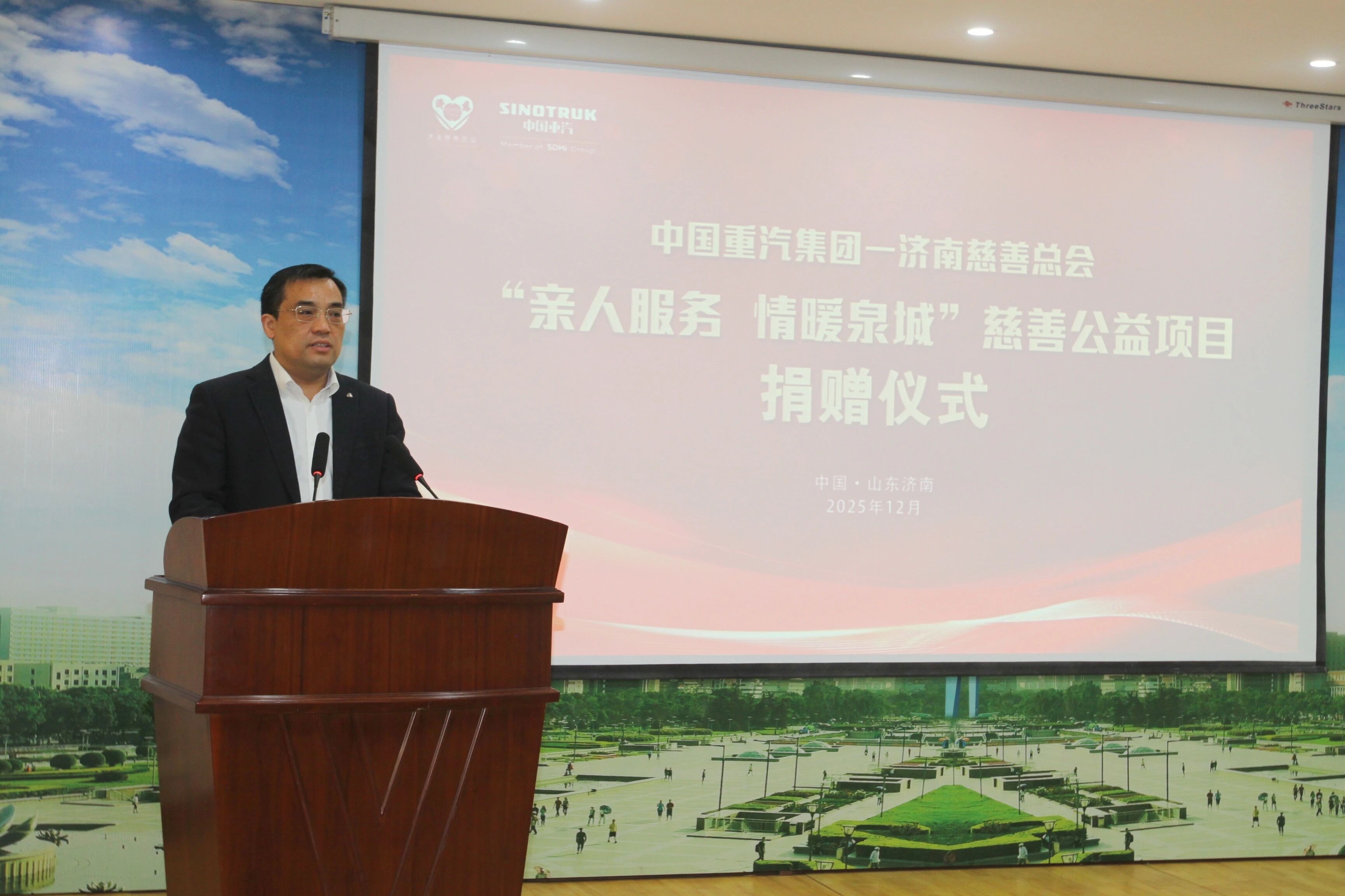 To earnestly fulfill the social responsibility of a state-owned enterprise and provide targeted support for the development of education in remote areas of Jinan, on December 19, SINOTRUK and Jinan Charity Federation held a donation ceremony for the “Family Care, Warming Jinan” charity program. Xu Mingmei, former Vice Chairman of the Jinan Municipal Committee of the Chinese People’s Political Consultative Conference and President of Jinan Charity Federation, and Jiang Pengpeng, Deputy Party Secretary, Director, and Chairman of the Labor Union of SINOTRUK, attended the ceremony.